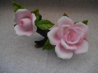 Capodimonte-Style Flowers On Log - Porcelain Roses