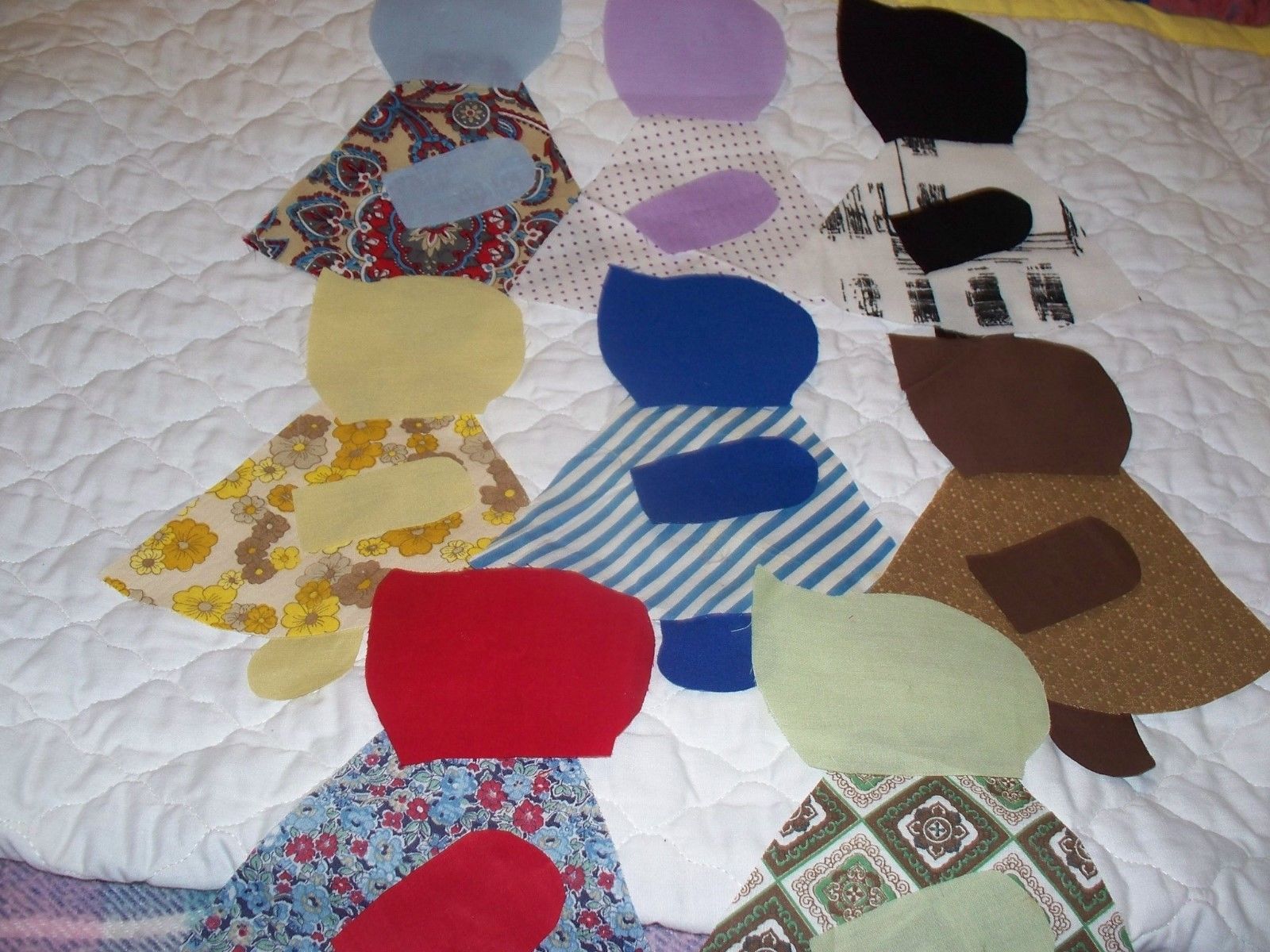 ADORABLE SUN BONNET SUES QUILT PIECES CUT BY HAND QUILTS 8 DOLLS