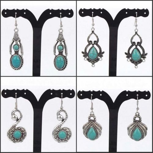 Title (ebay affiliate link): Wholesale 4X Lady Antique Tibet Silver Flower Blue Turquoise Dangle Earring Gift