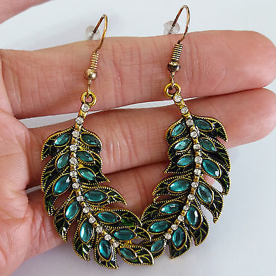 Title (ebay affiliate link): Vintage Antique Metal Leaves Green Stones Dangle Hookie Hook 6 cm Long Earrings