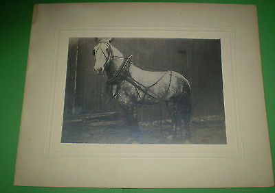 vtg Photo DAPPLE GRAY FARM HORSE + Collar & Harness Matted