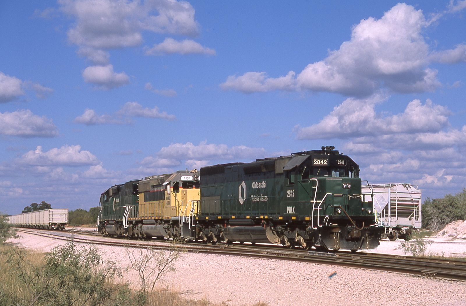 Title (ebay affiliate link): Oldcastle Materials SD40T-2R # 2842 ( ex SP ) @ Marble Falls, TX 10/28/2016