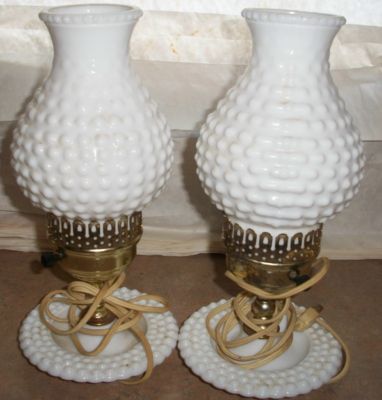 2 White Hobnail Milk Glass Bedroom Table Lamps Lights