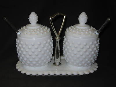 FENTON VINTAGE MILK GLASS HOBNAIL JELLY / JAM SET TRAY