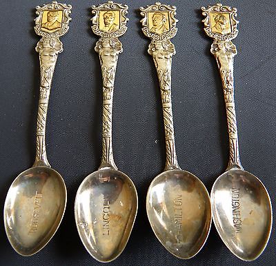 4 Vintage Presidential Spoons by Montagnani Italy Roosevelt - Hamilton - Washing