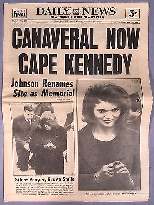 1963 New York Daily News November 29 JFK Canaveral Now Cape Kennedy