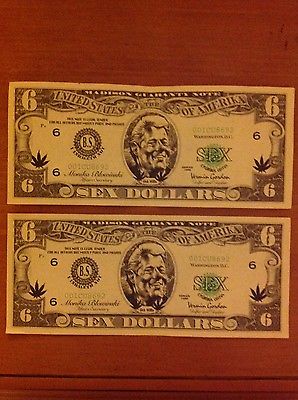 (2) Bill Clinton Sex $6.00 Dollar Bill Crude Humor Pot Leaf Monica Blowinski