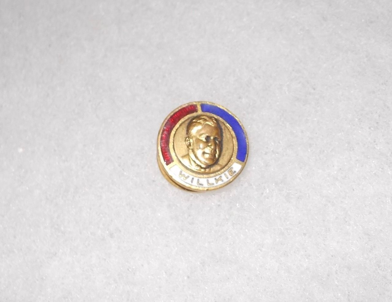 Title (ebay affiliate link): VINTAGE 1940 "WILLKIE" RED, WHITE & BLUE RAISED FACE PIN