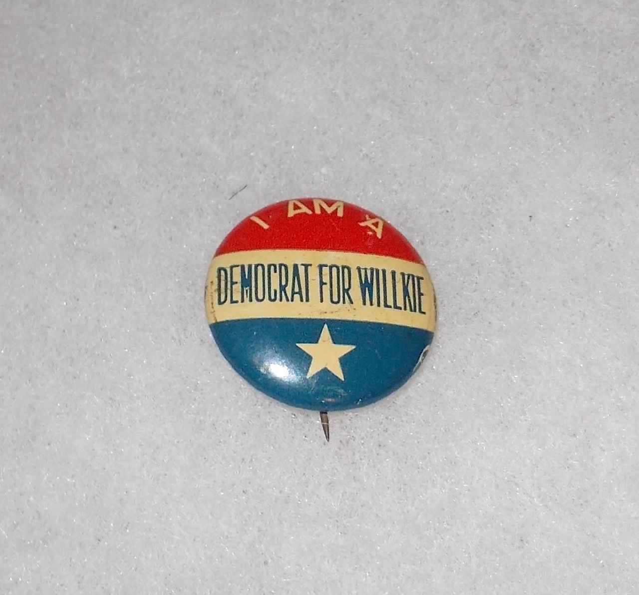 VINTAGE 1940 "DEMOCRAT FOR WILLKIE" RED, WHITE & BLUE CAMPAIGN BUTTON