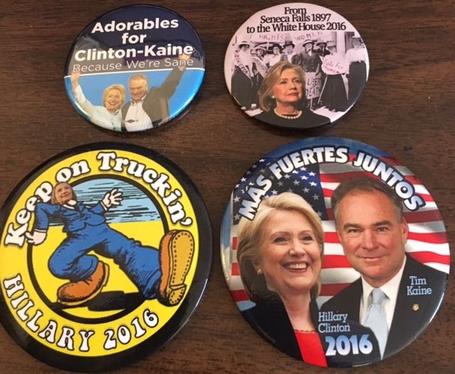 Title (ebay affiliate link): Two 2 1/4" Hillary and Two 3" Political Campaign Pinback Buttons