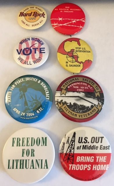 Title (ebay affiliate link): Lot of 8 Various Cause and Social Issue Political Pinback Buttons