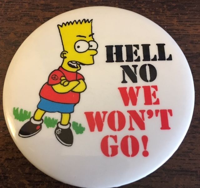 Title (ebay affiliate link): 2" Simpsons "Hell No We Won''t Go!" Cause Pinback Button