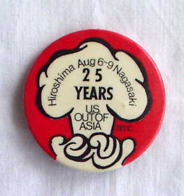 Title (ebay affiliate link): 1970 Anti War/Anti-Atomic Bomb Pinback Button 25 Year Anniversary of Hiroshima