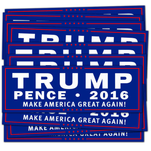 Title (ebay affiliate link): TRUMP PENCE 2016 Vinyl Bumper Stickers Make America Great Again (10 pack)