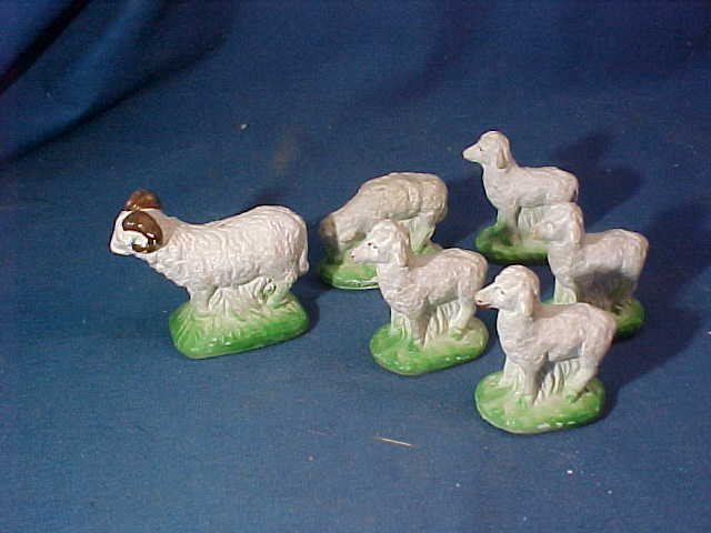 Title (ebay affiliate link): 6-1930s CHRISTMAS NATIVITY Village PUTZ CHALKWARE SHEEP Hand Painted