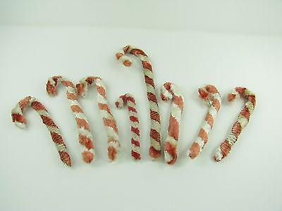7 Vintage Chenille Candy Cane Christmas Ornaments Red & White