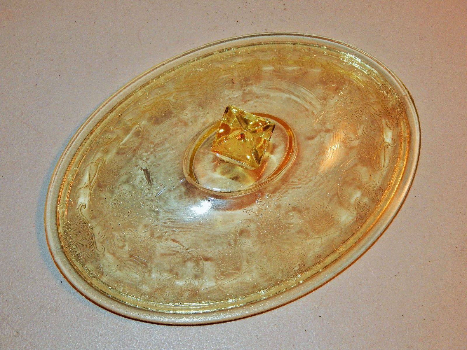 Title (ebay affiliate link): VINTAGE YELLOW HAZEL-ATLAS FLORENTINE POPPY DEPRESSION GLASS VEGETABLE BOWL LID