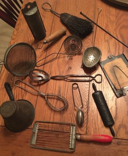 Title (ebay affiliate link): Vintage utensils LOT * Rustic Kitchen Decor * Primitive Decor * Antique cookware