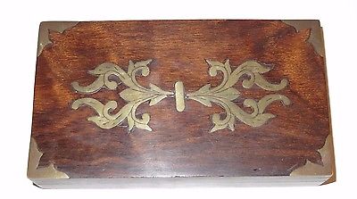 NICE ANTIQUE BRASS AND WOOD CIGAR BOX