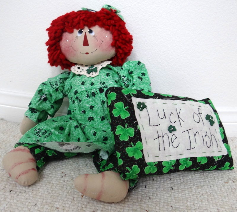 Primitive handmade St. Patrick''s Day Raggedy Ann Doll