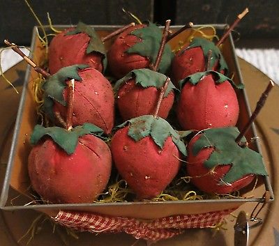 Title (ebay affiliate link): PRIMITIVE GRUNGY STRAWBERRIES WITH VINTAGE BERRY BASKET ORNIES BOW SELF SITTER