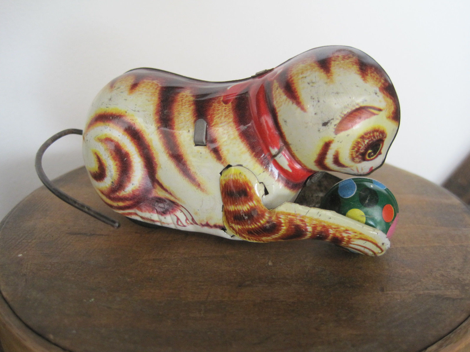 Title (ebay affiliate link): Old Primitive Little Tin Toy Windup Cat with Ball in her Paws Bargain Price Find