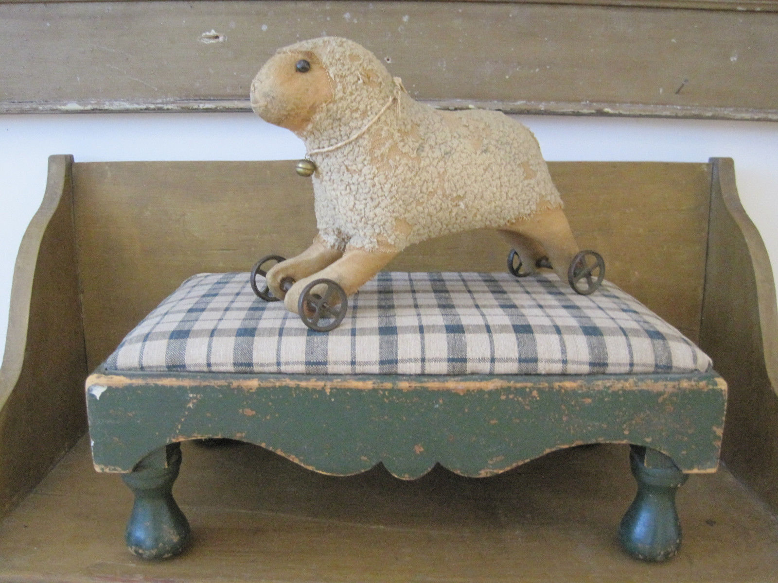 Title (ebay affiliate link): 19th Century Original Green Paint Wood Stool Homespun Fabric on Top Primitive