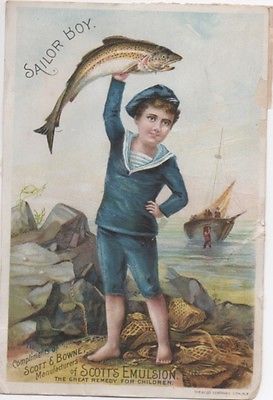 Title (ebay affiliate link): Sailor Boy Large Fish Scott''s Cod Liver Oil Quack Medicine Adv Trade Card c1880s