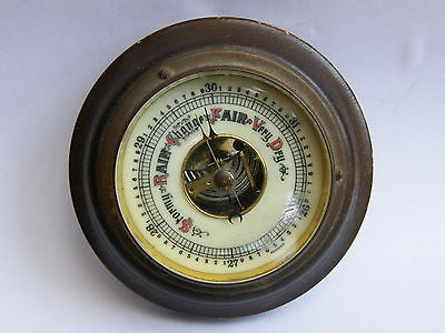Vintage-Small Mahogany Portal Style Aneroid Barometer With Enamel Dial-c1930''s
