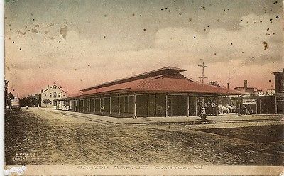 Maryland postcard c1910 Canton MD old wagons near Marketplace AS-IS spotty sky