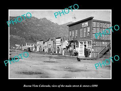 OLD LARGE HISTORIC PHOTO OF BUENA VISTA COLORADO, VIEW OF MAIN St & STORES c1890