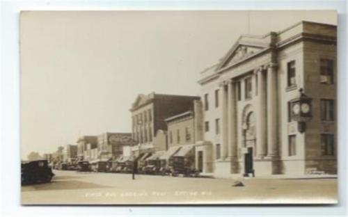 Antigo, Wisconsin. Fifth Ave. Looking West. Signs & Cars with Large Coke Sign.