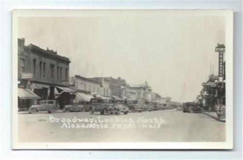 Title (ebay affiliate link): Alexandria, Minnesota. Broadway Looking North. Many Signs & Cars. Real Photo.