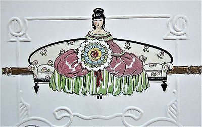 Art Deco LADY with Bouquet of Flowers Birthday Embossed Postcard Poetry
