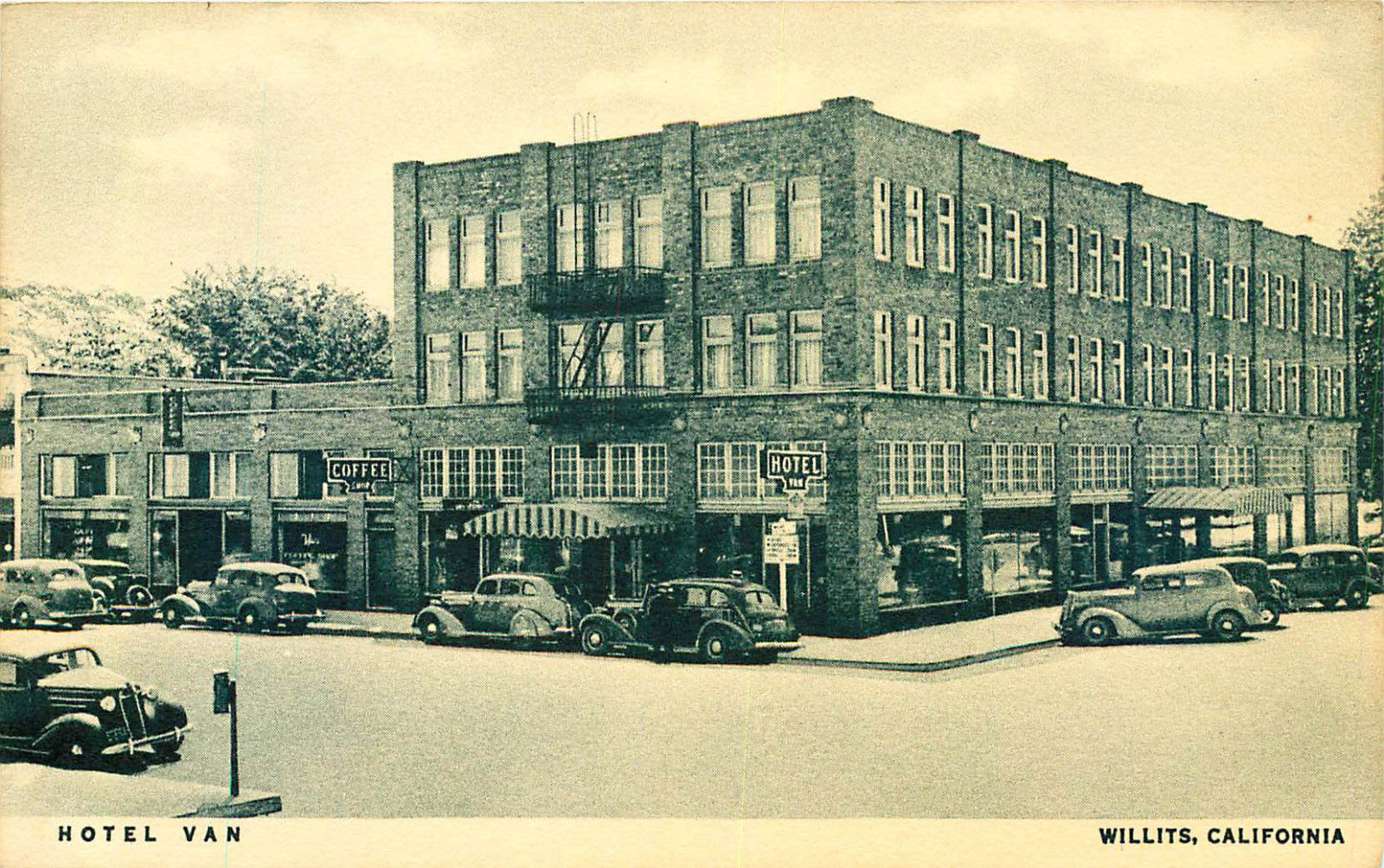 HOTEL VAN, WILLITS, CALIFORNIA, VINTAGE POSTCARD