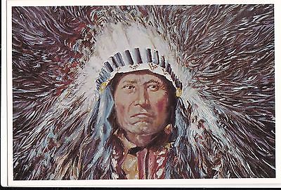 CHIEF AFEAID OF ENEMY - INDIAN CHIEF by artist GABRIEL KARDEN 1975 postcard