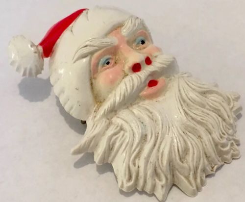 Title (ebay affiliate link): ANTIQUE VINTAGE SILVER PLATE CELLULOID EARLY PLASTIC BIG SANTA CLAUS PIN BROOCH