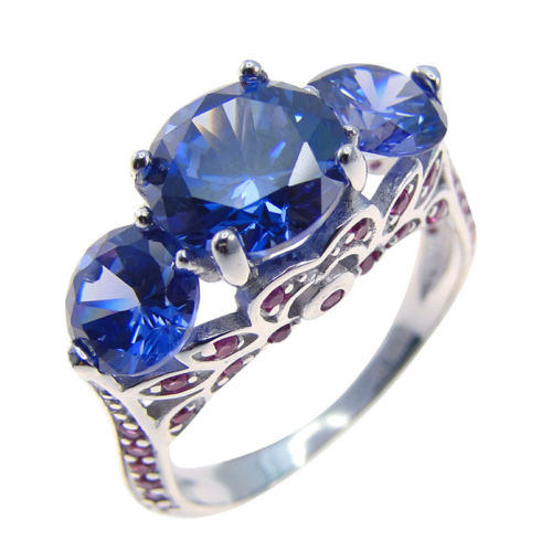 Title (ebay affiliate link): Silver 925 Three-Stone Tanzanite CZ Women Antique Art Deco Engagement Fine Ring