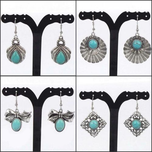 Title (ebay affiliate link): Wholesale 4X Lady Antique Tibet Silver Flower Blue Turquoise Dangle Earring Gift