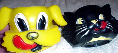 Vintage Plastic Childrens Cups Kenlration Dog and Cat