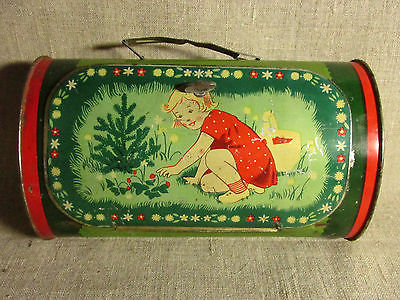 Vintage Soviet Russian tin box launchbox children bear flowers Rare Norma 60''s