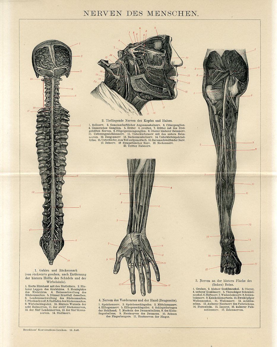 Title (ebay affiliate link): 1894 HUMAN NERVES SPINAL CORD ANATOMY Antique Engraving Print