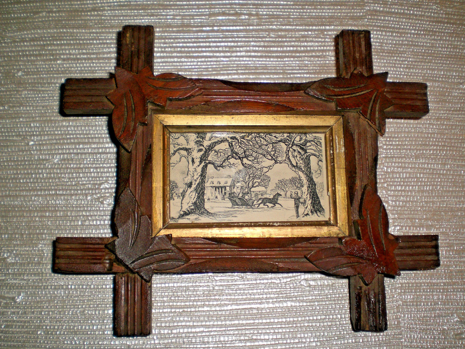Miniature ENGRAVING / "Southern Plantation & Sleigh" in ADIRONDACK FRAME