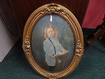Title (ebay affiliate link): Antique Wood OVAL FRAME w/ Bubble Glass, vintage chalk drawing of young girl