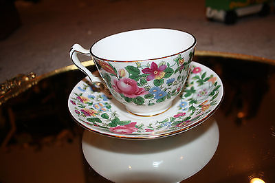 crown Staffordshire porcelain TEA CUP AND SAUCER ROSE chintz gold trim