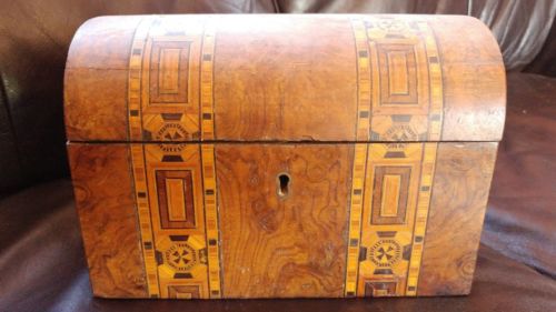 Title (ebay affiliate link): Antique Tea Caddy inlaid Tunbridge type Walnut Domed Top as found from estate