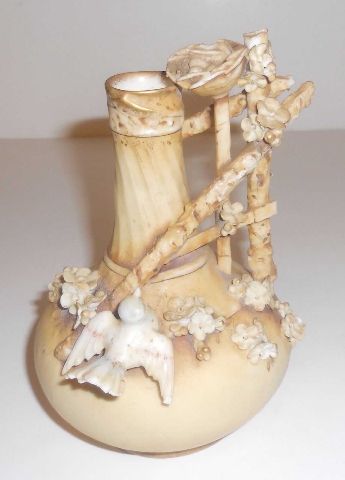 Title (ebay affiliate link): Antique RSIK Bohemia Porcelain Unique Vase Pitcher Bird Nest Flowers Vintage