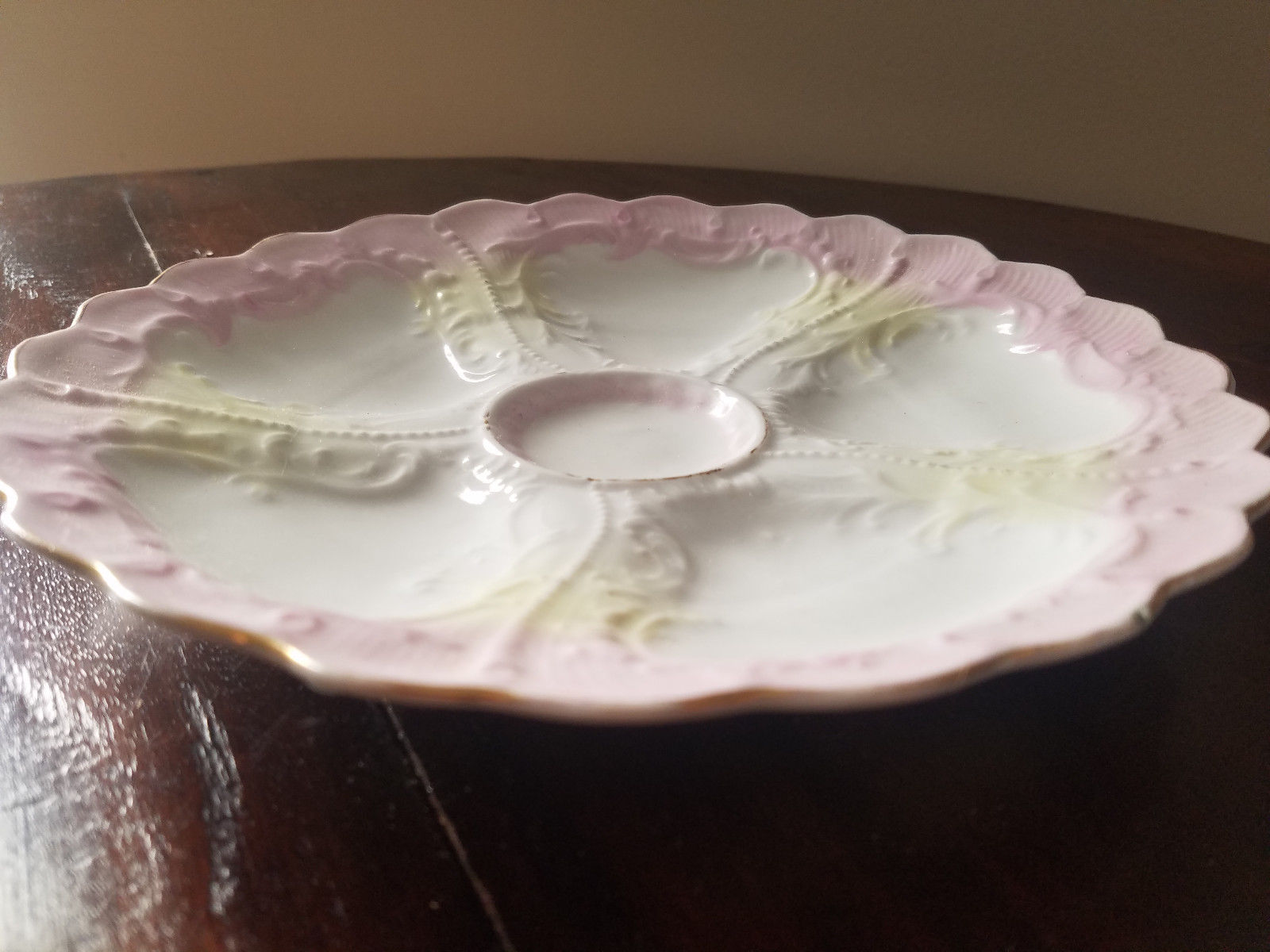 ANTIQUE OYSTER PLATE--WEIMAR--GERMANY--Pink and White & yellow