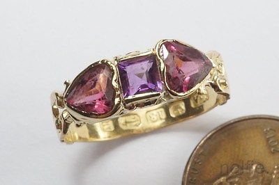 Title (ebay affiliate link): ANTIQUE ENGLISH MID VICTORIAN 18K GOLD AMETHYST & HEART SHAPED GARNET RING