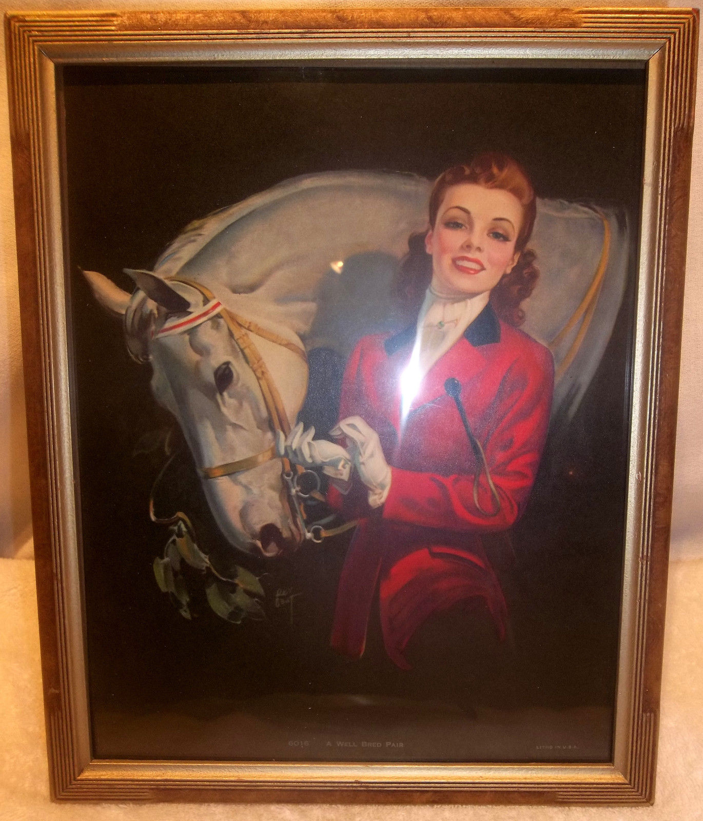 Title (ebay affiliate link): Antique Art Deco Gold & Brown Woodgrain Picture Frame Lady & Horse Print NICE!